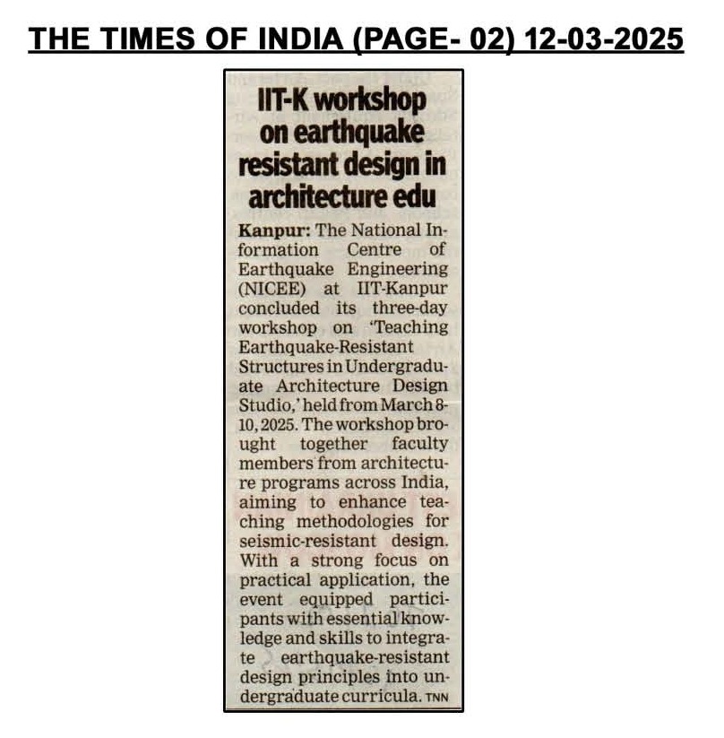 Earthquake resistance practices workshop held at IITK, Times of India |